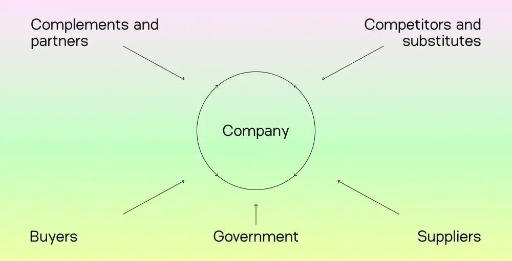 A natural starting point for thinking through privacy and social cooperation is to look at companies and how they interact with each other, which is well represented by Porter's Forces.
